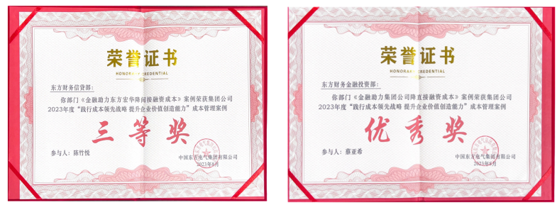 PA视讯在线官网财务“金融助力集团公司降间接融资成本”案例荣获集团公司2023年度“践行成本领先战略 提升企业价值创造能力”成本管理案例三等奖,“金融助力集团公司降直接融资成本”案例荣获集团公司2023年度“践行成本领先战略 提升企业价值创造能力”成本管理案例优秀奖。