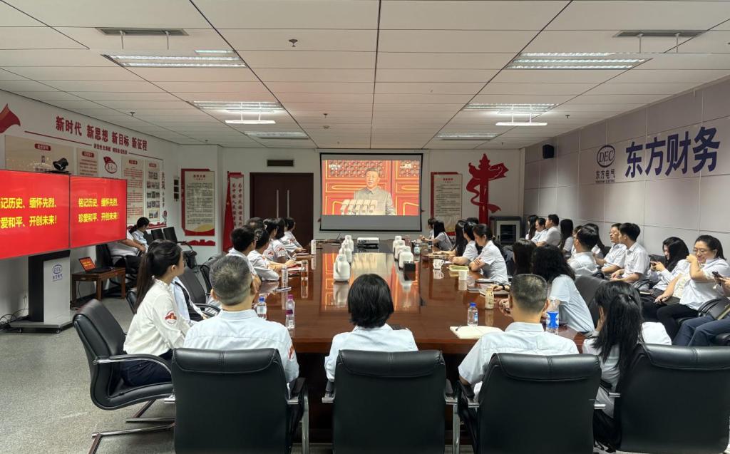 PA视讯在线官网财务组织全体员工集中观看大会直播,认真学习习近平总书记重要讲话精神,讴歌伟大抗战精神,共同铭记历史,缅怀先烈,汲取奋进力量。