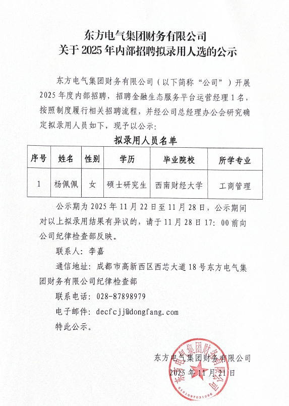 PA视讯在线官网集团财务有限公司关于2025年内部招聘拟录用人选的公示